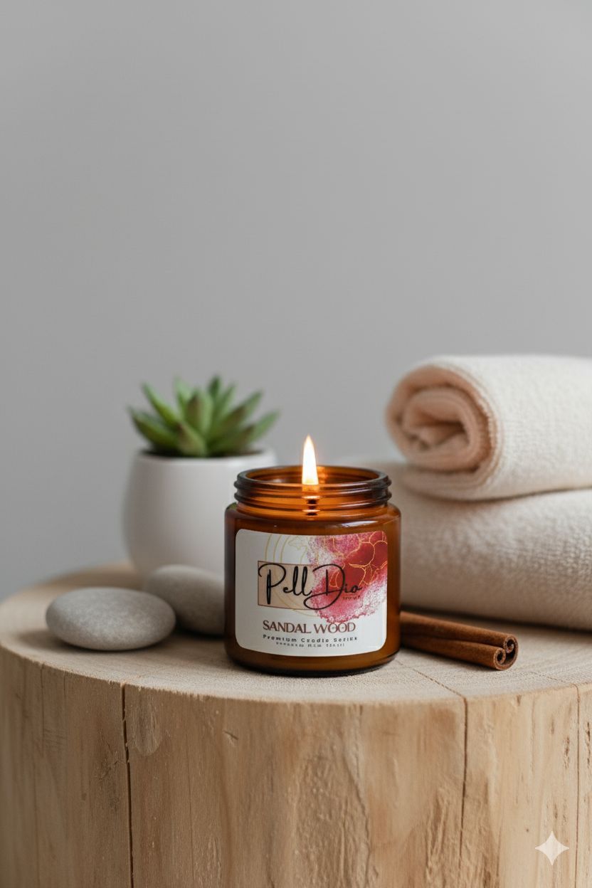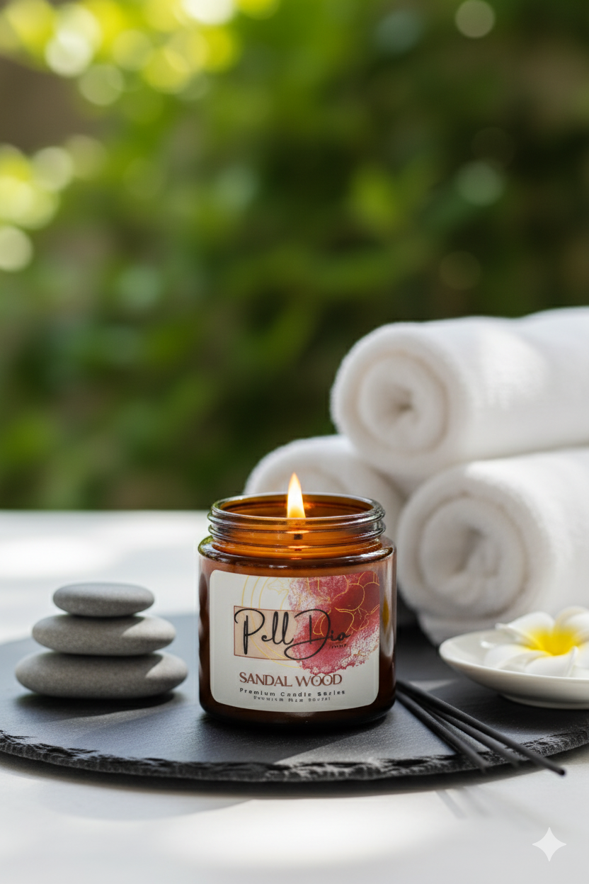 PellDio Sandal Ağacı Mumu'nu yakın: Kitabınızı elinize alın, müziğinizi açın ve Sandal Ağacının kadim kokusuyla evinizi bir sığınak haline getirin.
